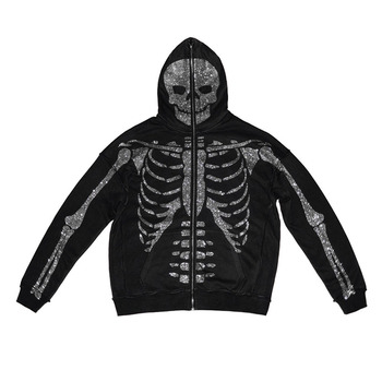 주문 디자인 거리 작풍 해골 모조 다이아몬드 로고 남자의 면 dropshoulder 특대 가득 차있는 zip hoodie
